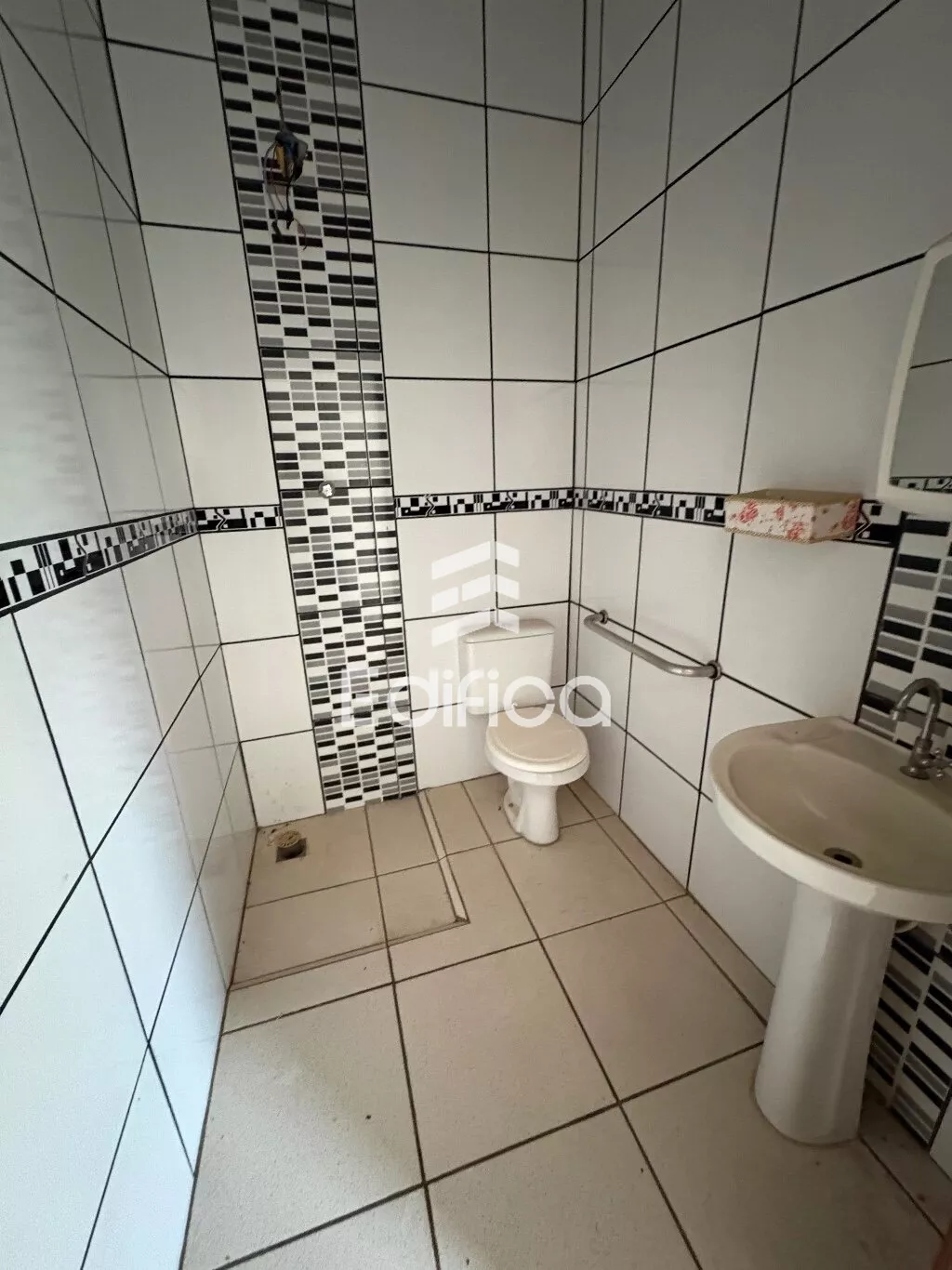 Com banheiro, cozinha, despensa e mais.