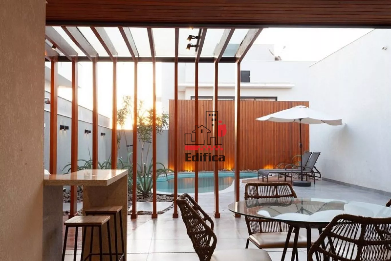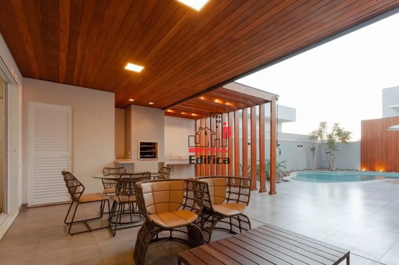 PISCINA, DECK DE MADEIRA, ÁREA GOURMET COM CHURRASQUEIRA, LAVANDERIA.