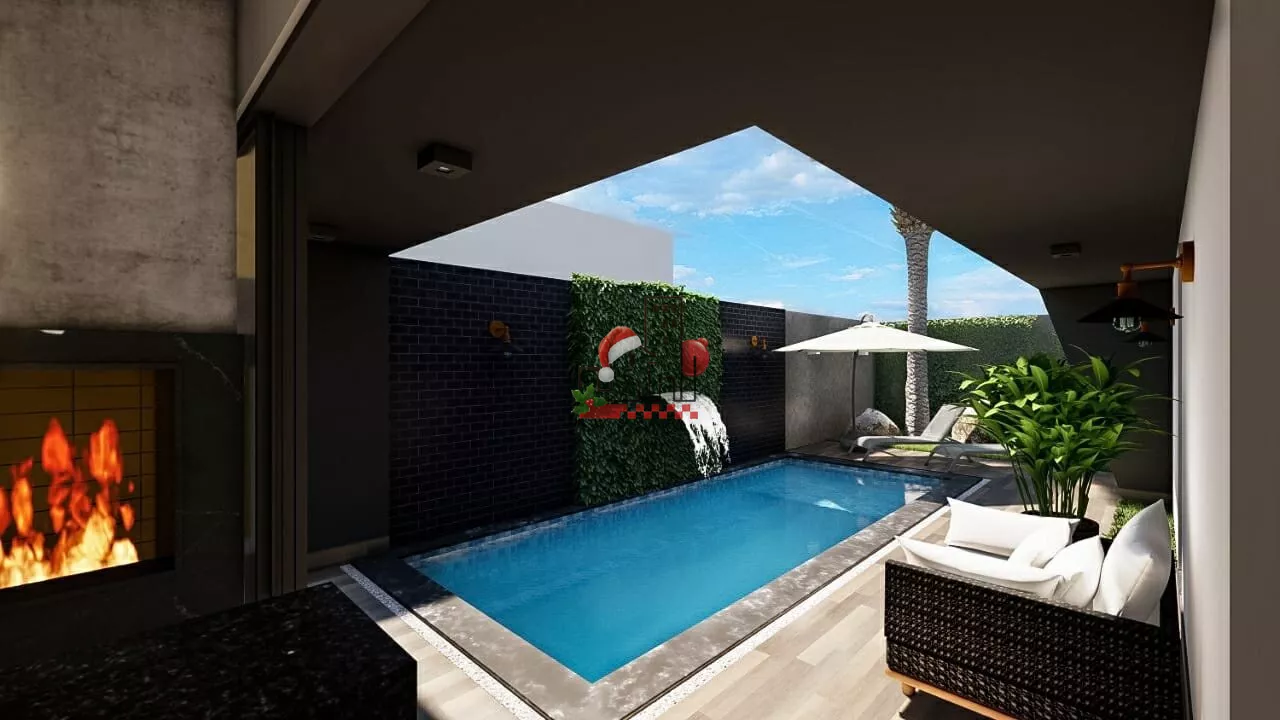 Casa com 200m2 de construção, sendo 180m2 a casa e 20m2 a piscina, terreno 360m2.