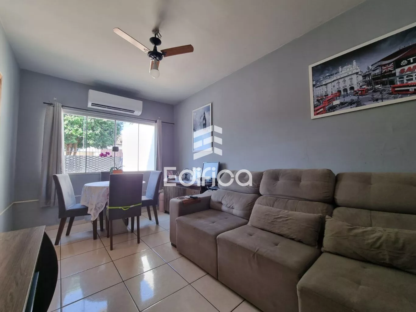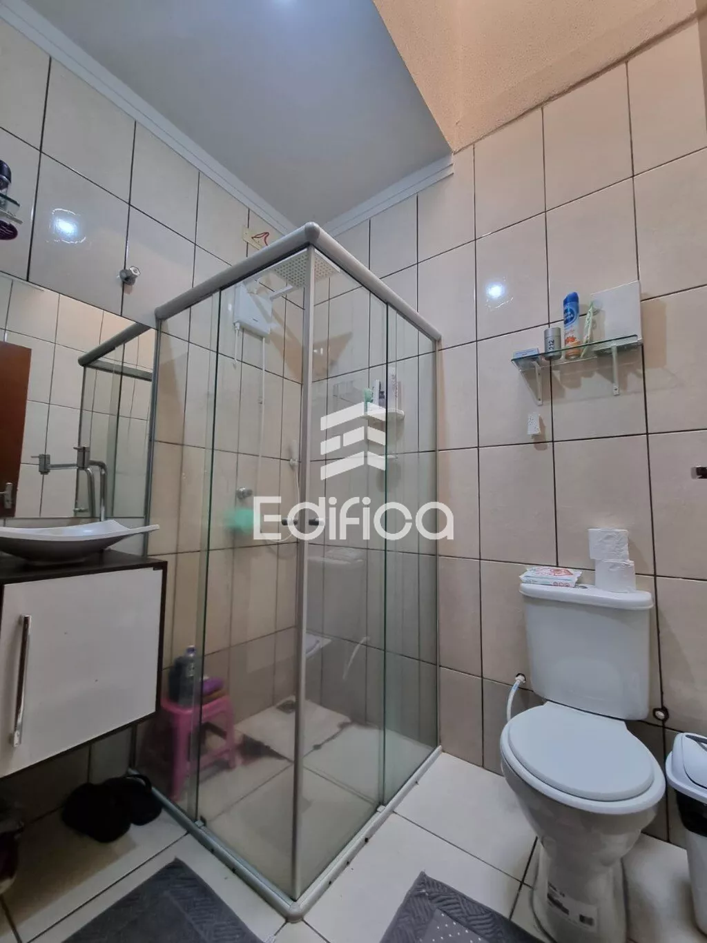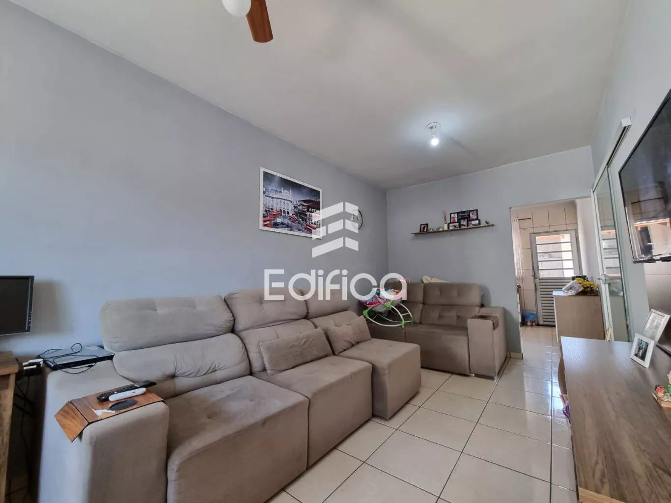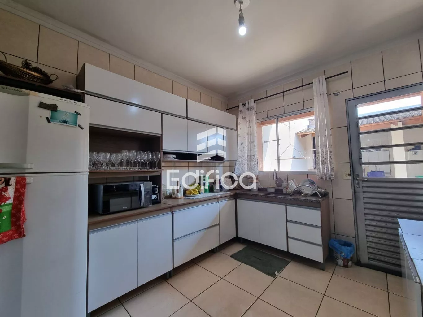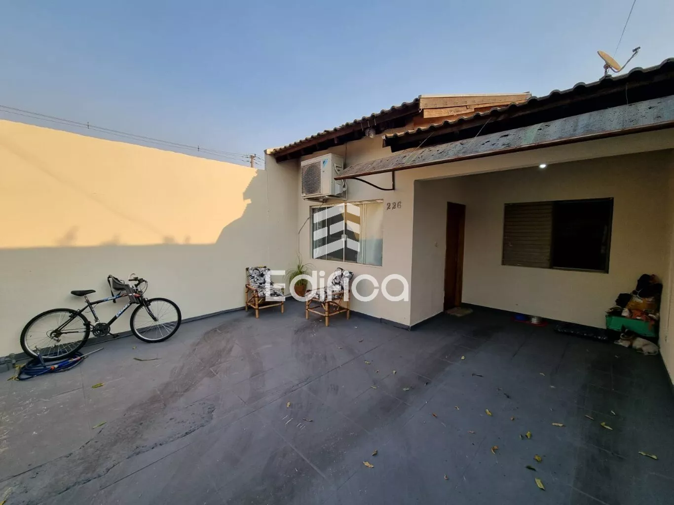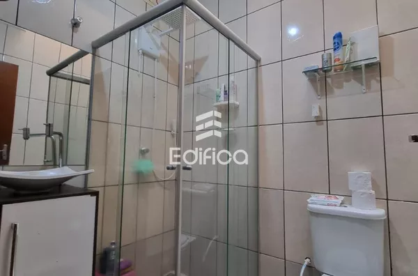 Portão eletrônica, telha de cimento, laje, piso cerâmico, área construída 109m2, área total do terreno de 147m2