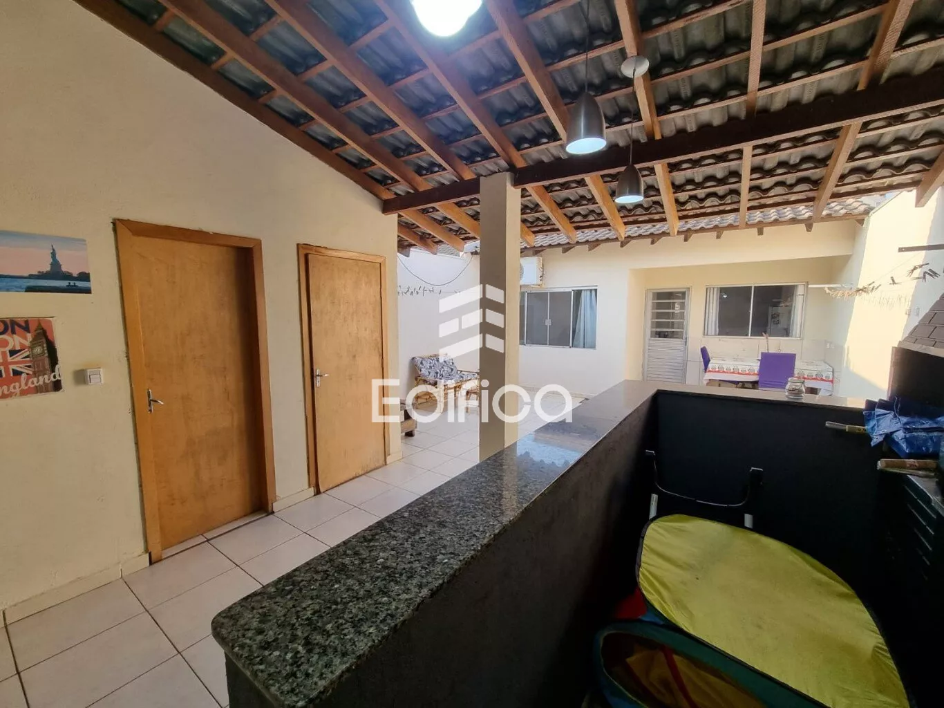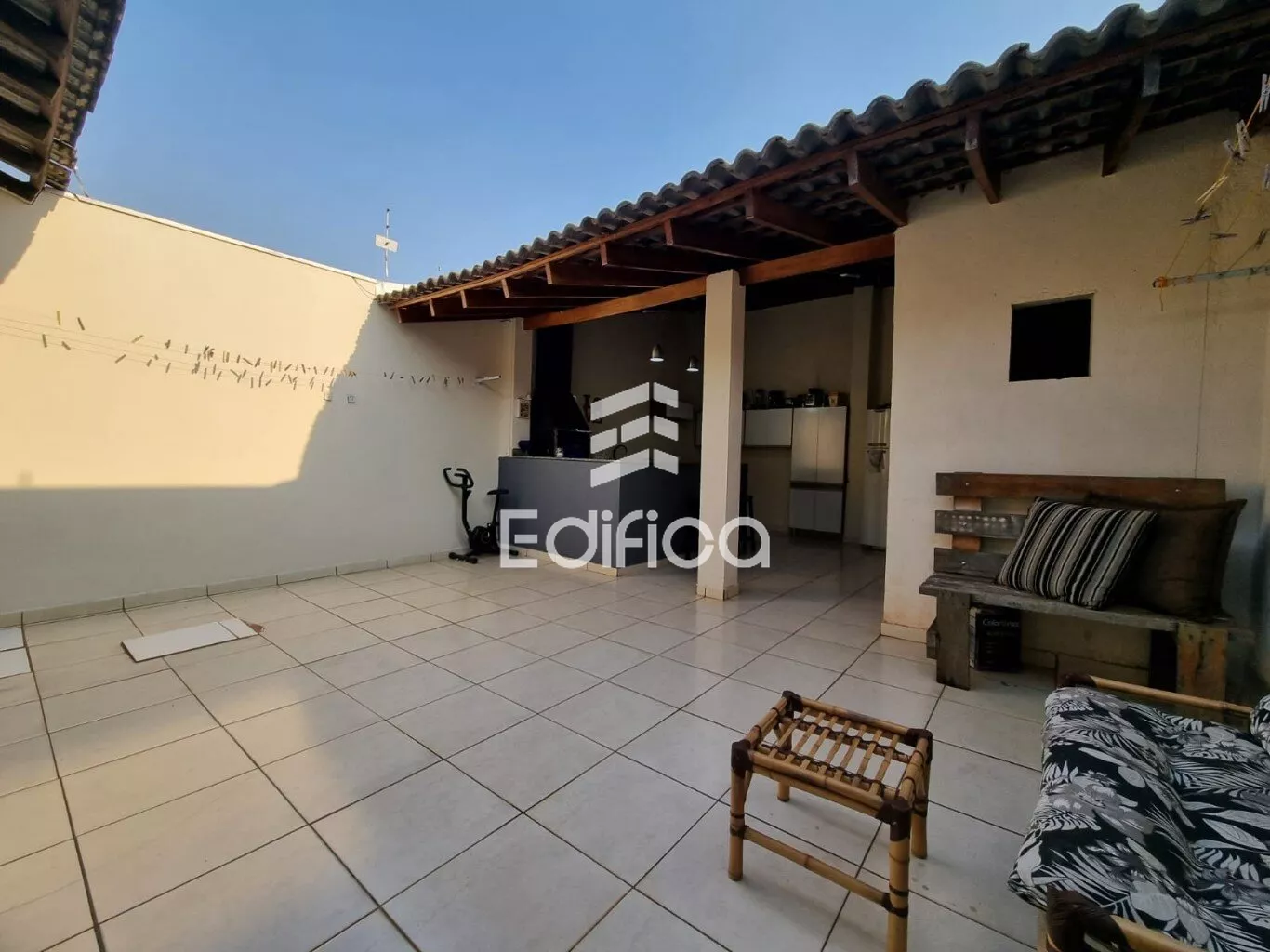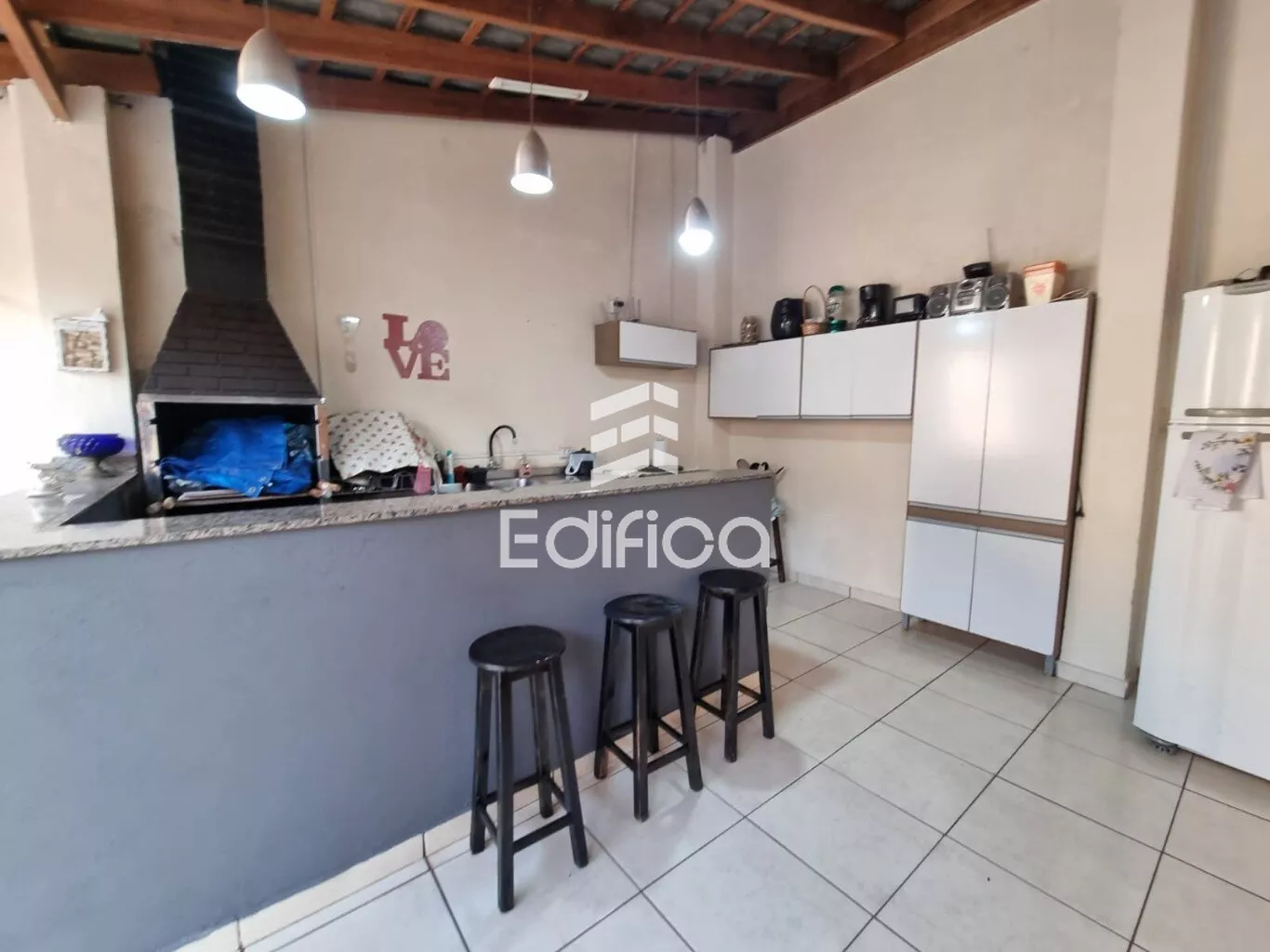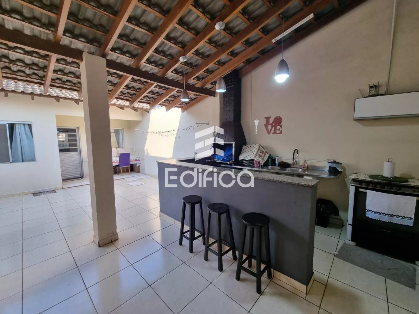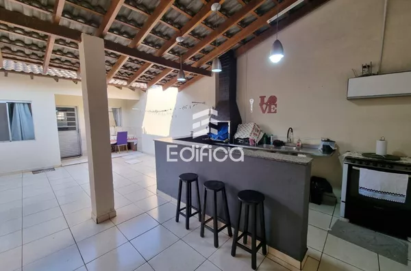 Com 02 quartos, cozinha, banheiro social, sala, área gourmet com churrasqueira, banheiro e uma despensa.