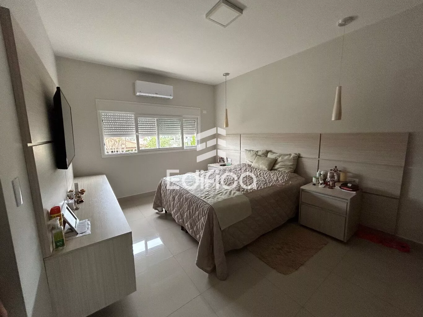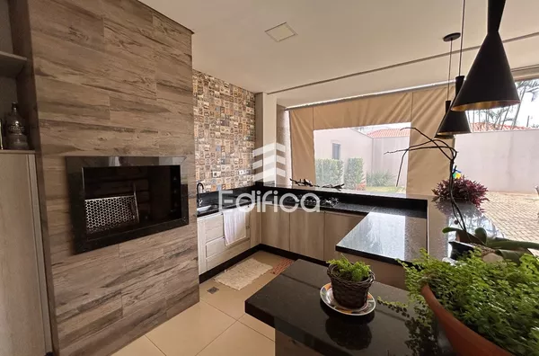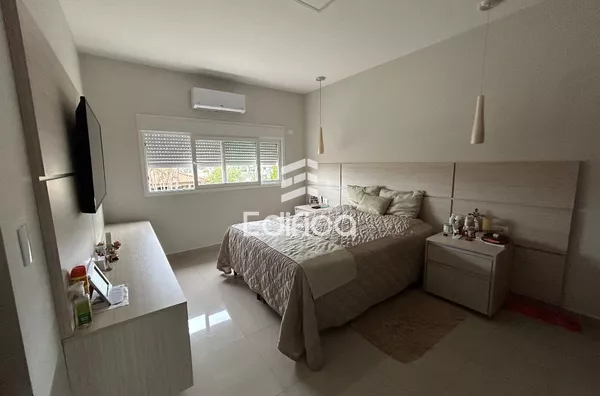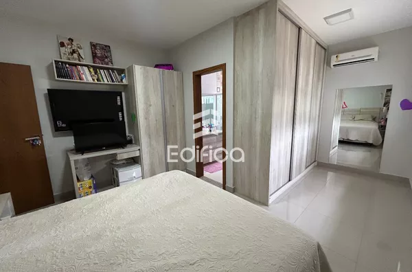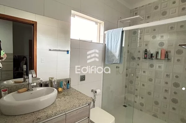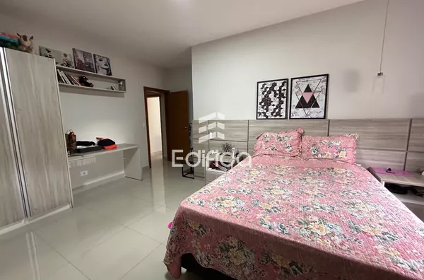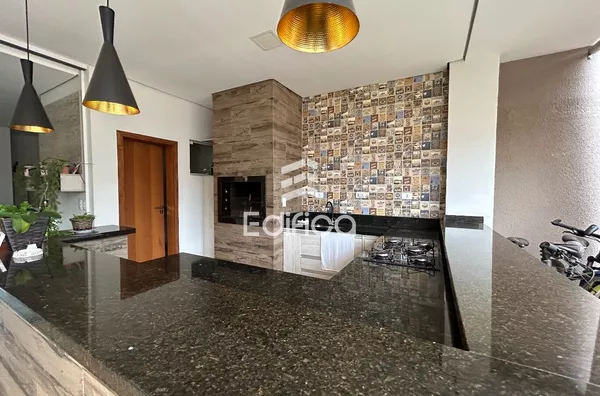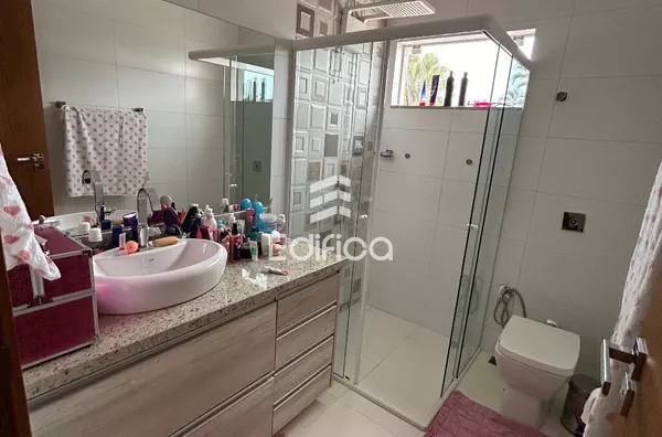 03 suítes + 1 quarto, sala, cozinha, lavabo, quintal amplo, garagem coberta, área gourmet e mais.