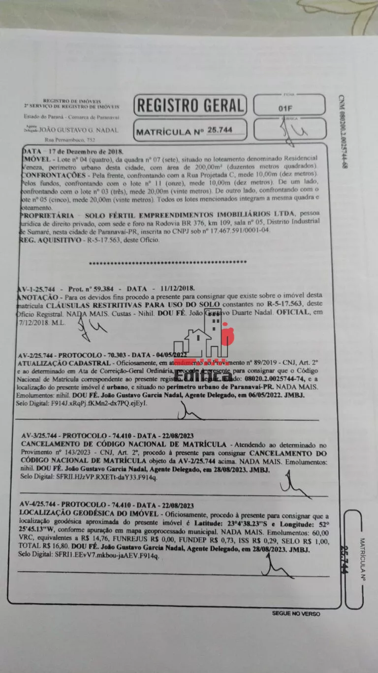 Terreno para venda, Residencial Veneza, Paranavaí