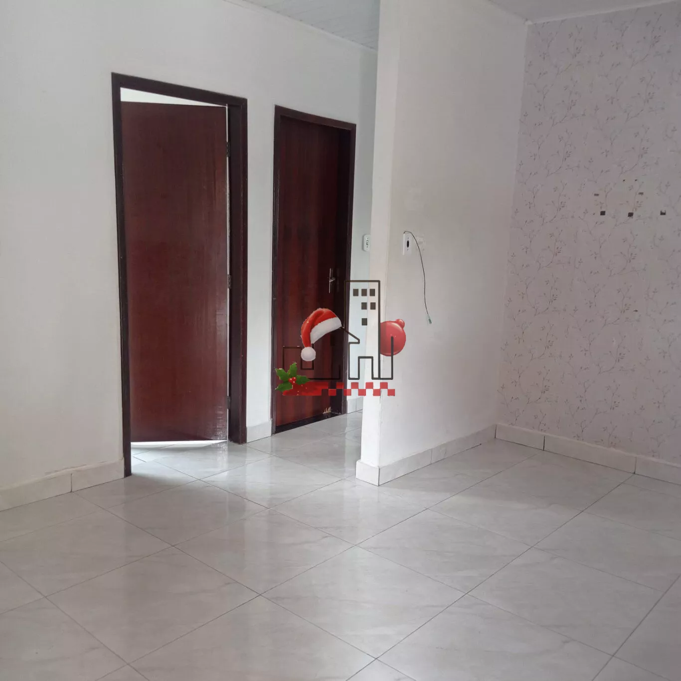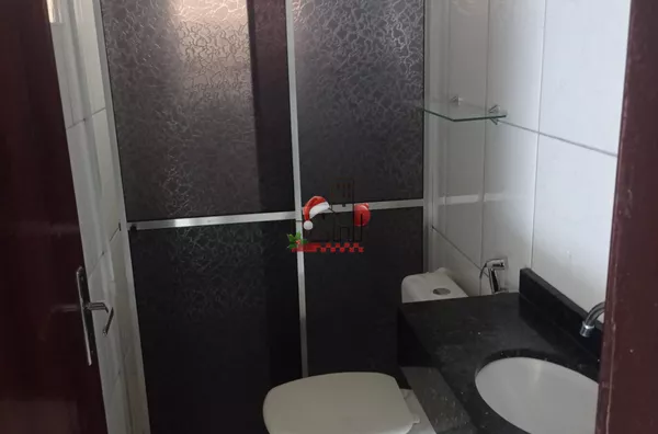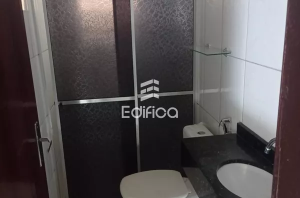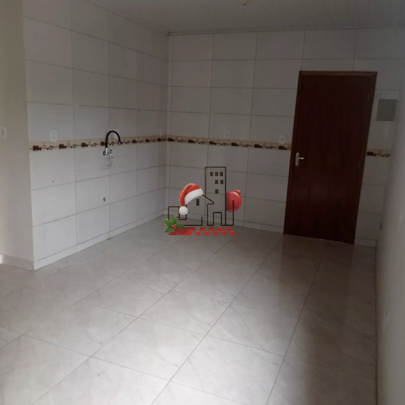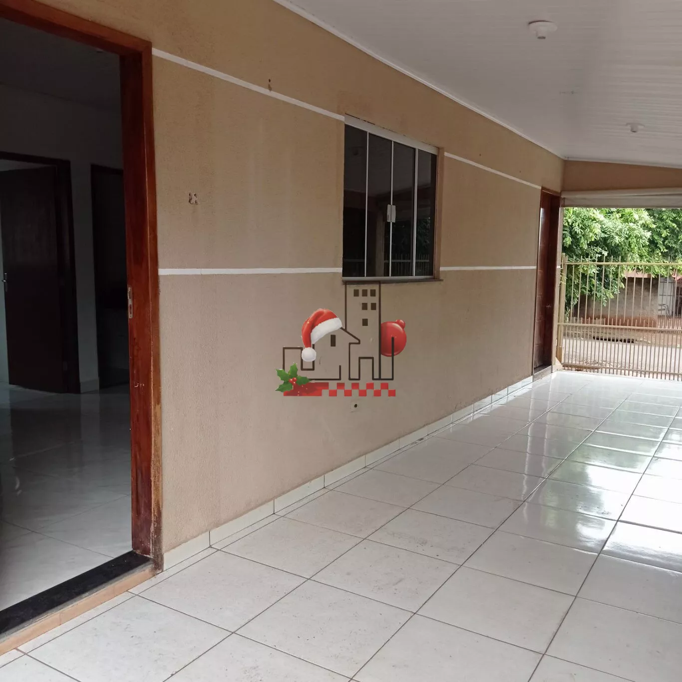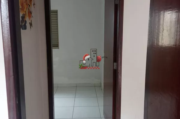 Três quartos, sala, cozinha ampla, banheiro, lavanderia e salão comercial.
