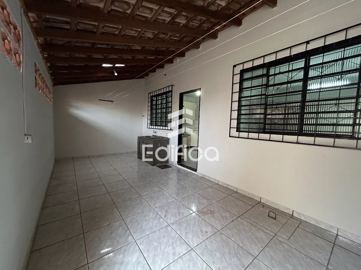 Sala, lavabo e garagem coberta