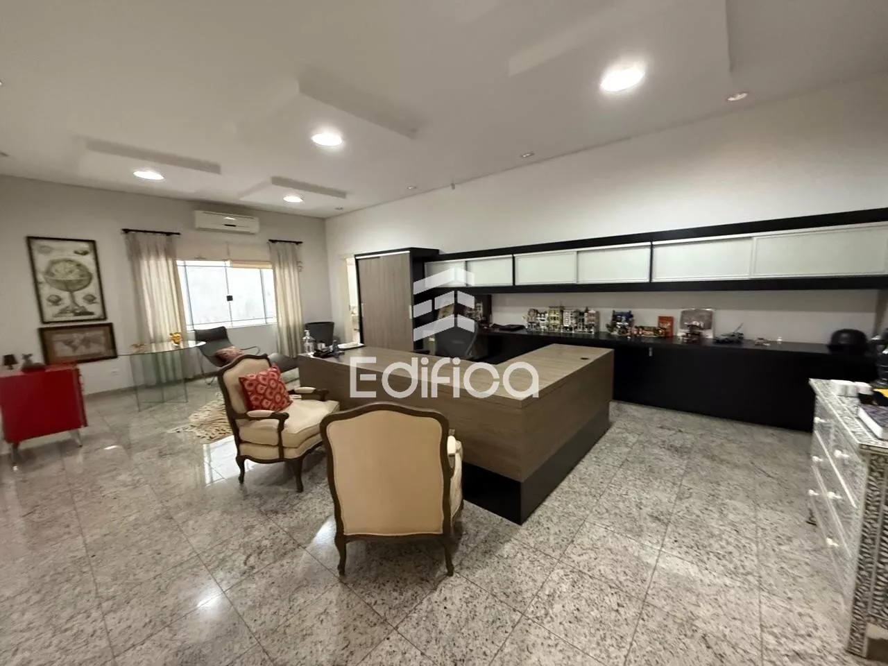 Com vagas de garagens, pátio, barracão e escritório.