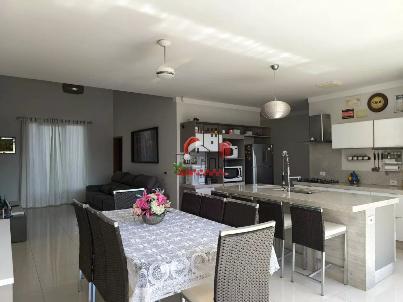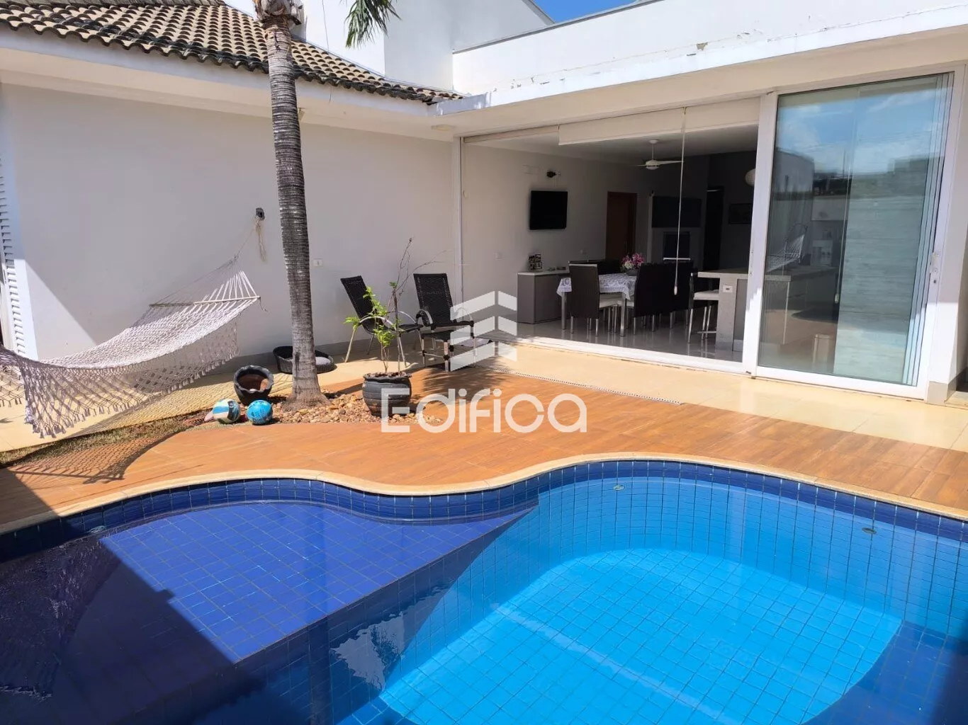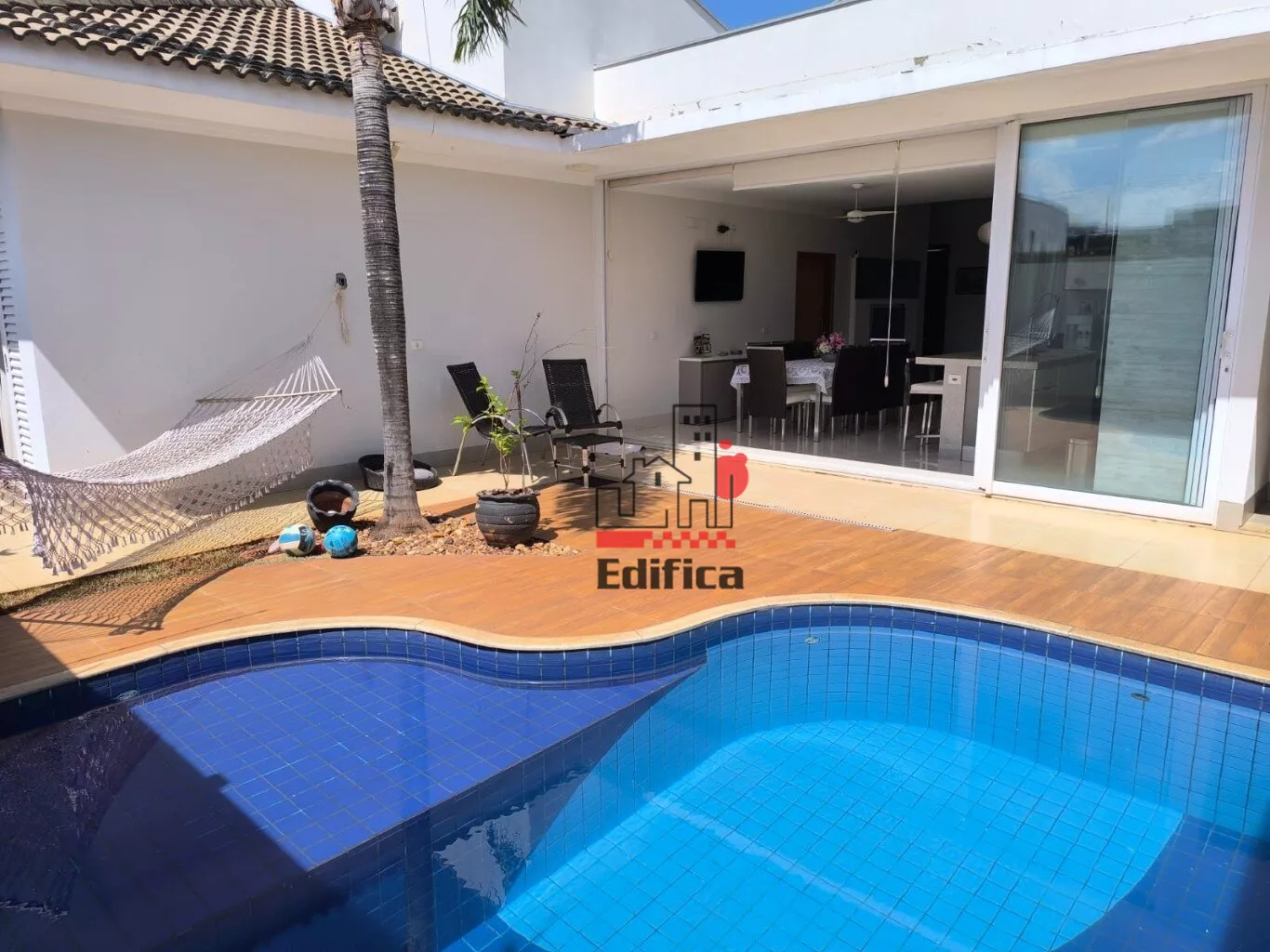 03 dormitórios, sendo 01 suíte, e banheiro social, sala e área gourmet e escritório ao lado da sala, banheiro ao lado da piscina, lavanderia e estendal.