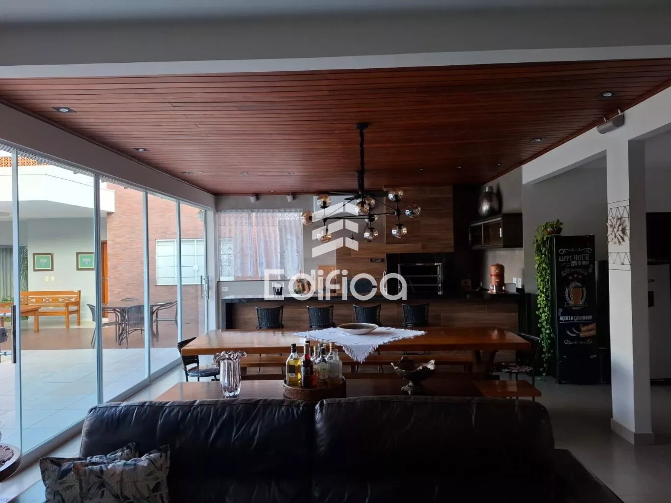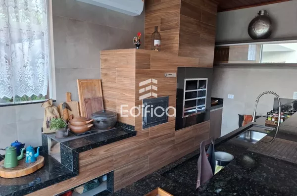 - Área gourmet integrada com sala e cozinha (churrasqueira / fogão a lenha)
