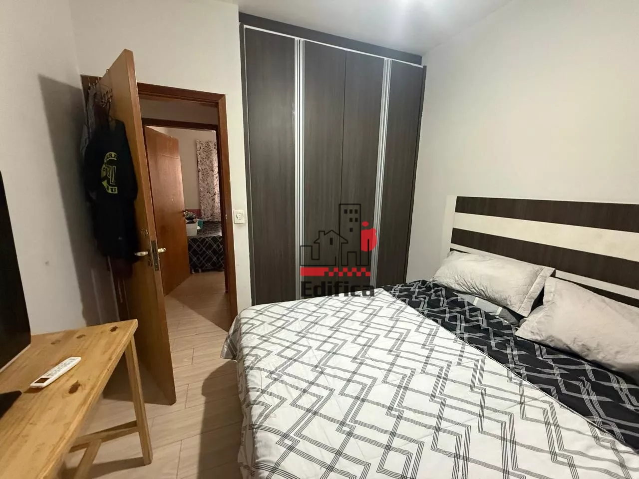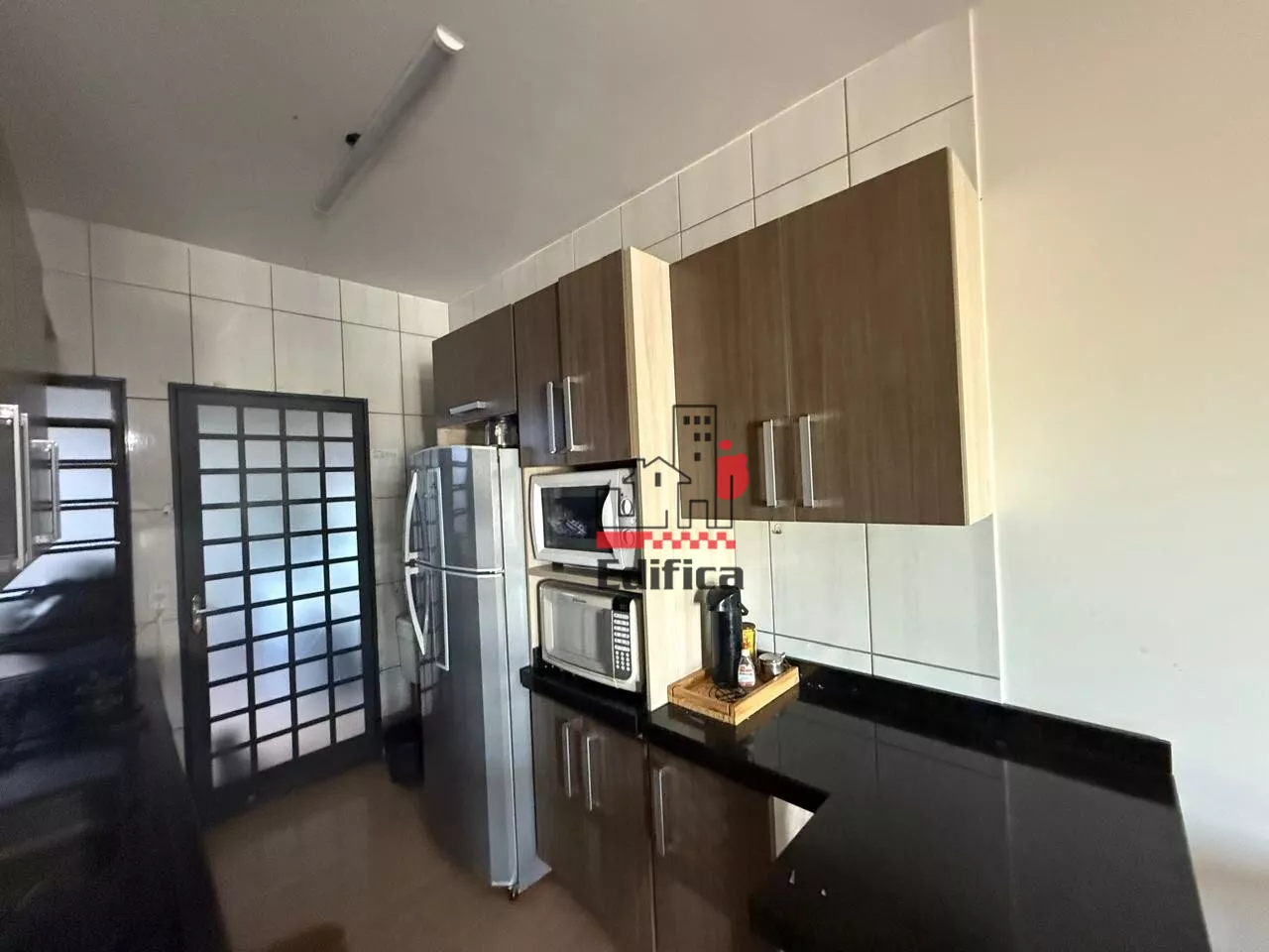 Possui móveis planejados na cozinha, banheiro e quarto