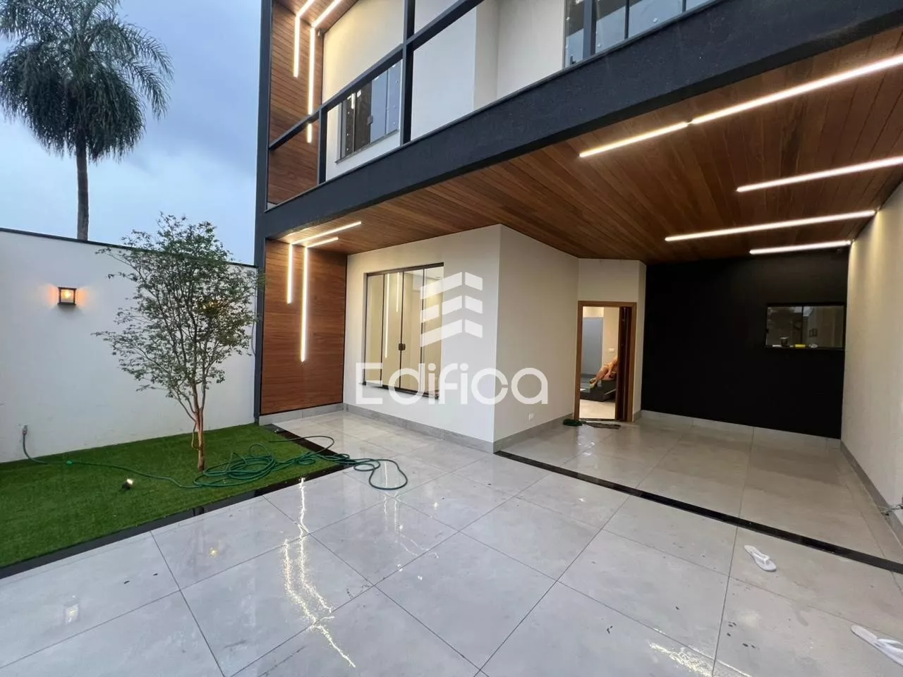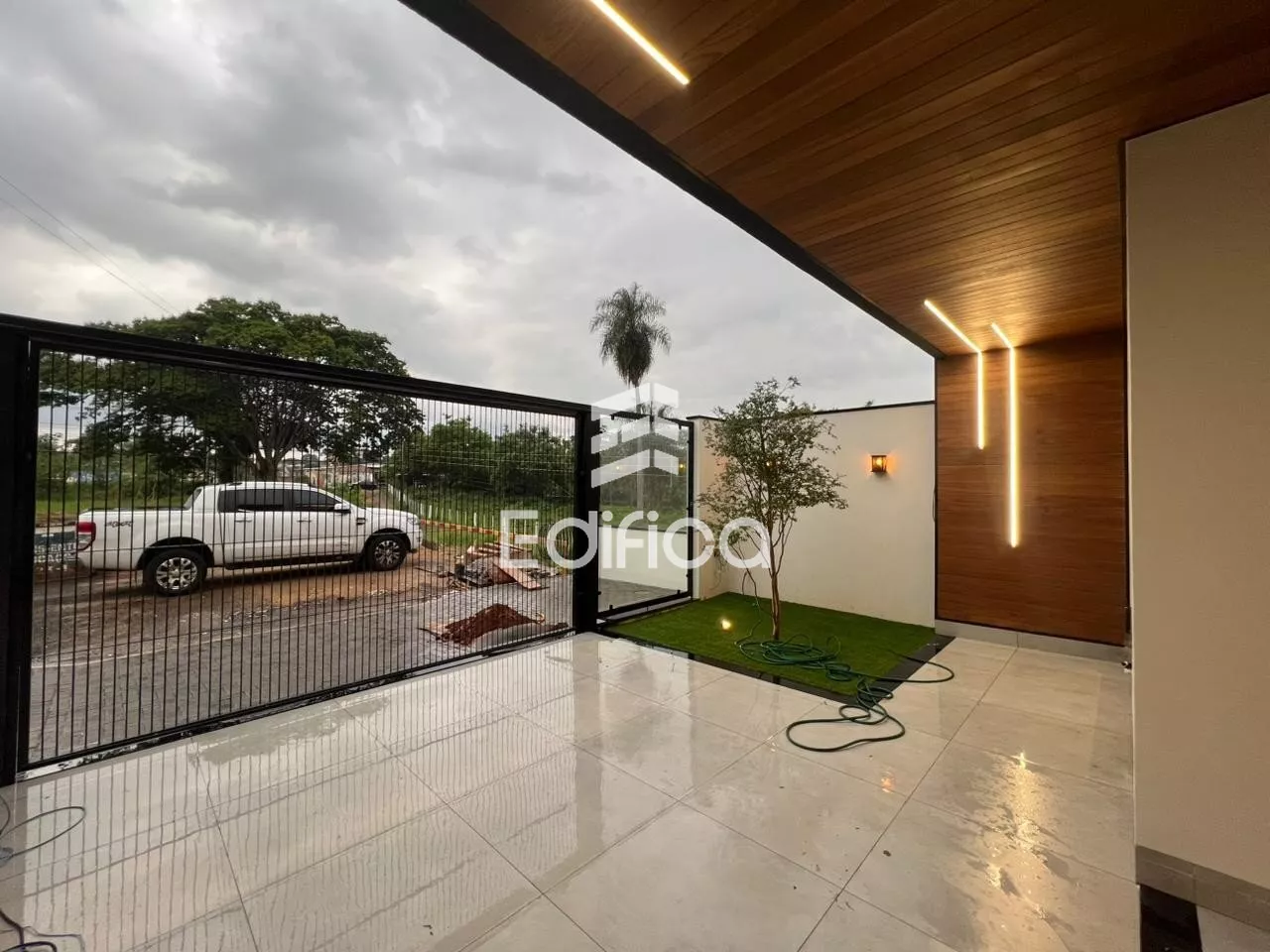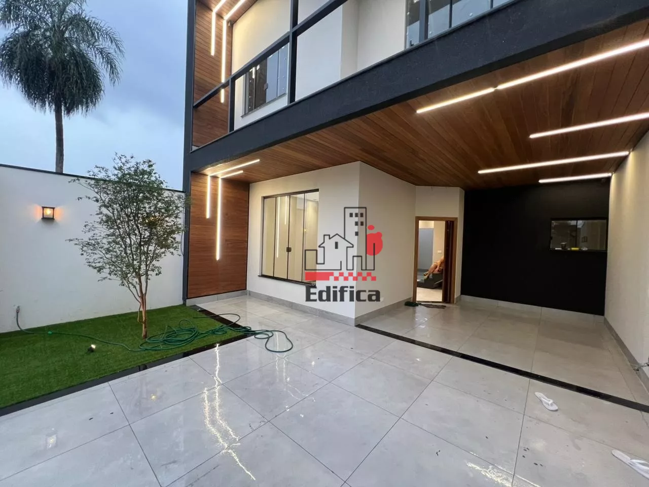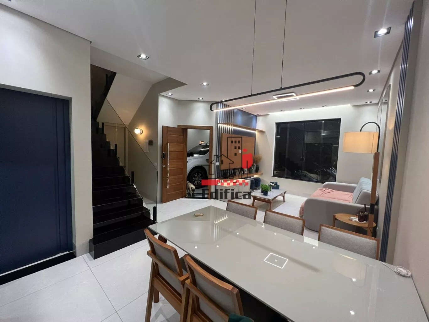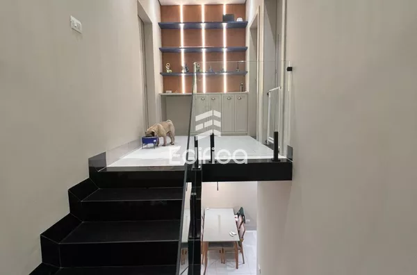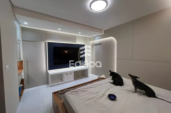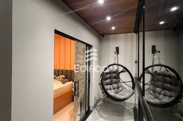 2 quartos sendo um suíte com closet. Sala de TV e jantar integradas, cozinha completa, lavanderia coberta, lavabo e banheiro social, garagem coberta para 2 carros, painéis solares instalados. Todos os cômodos com móveis planejados. Acabamento de alto padrão. Teto rebaixado com gesso e iluminação LED.
