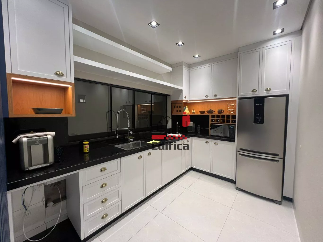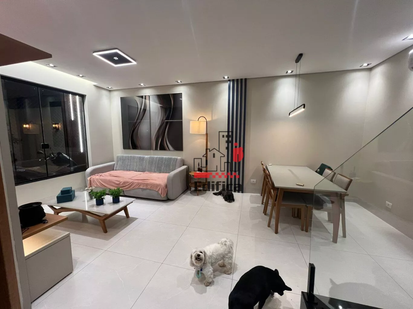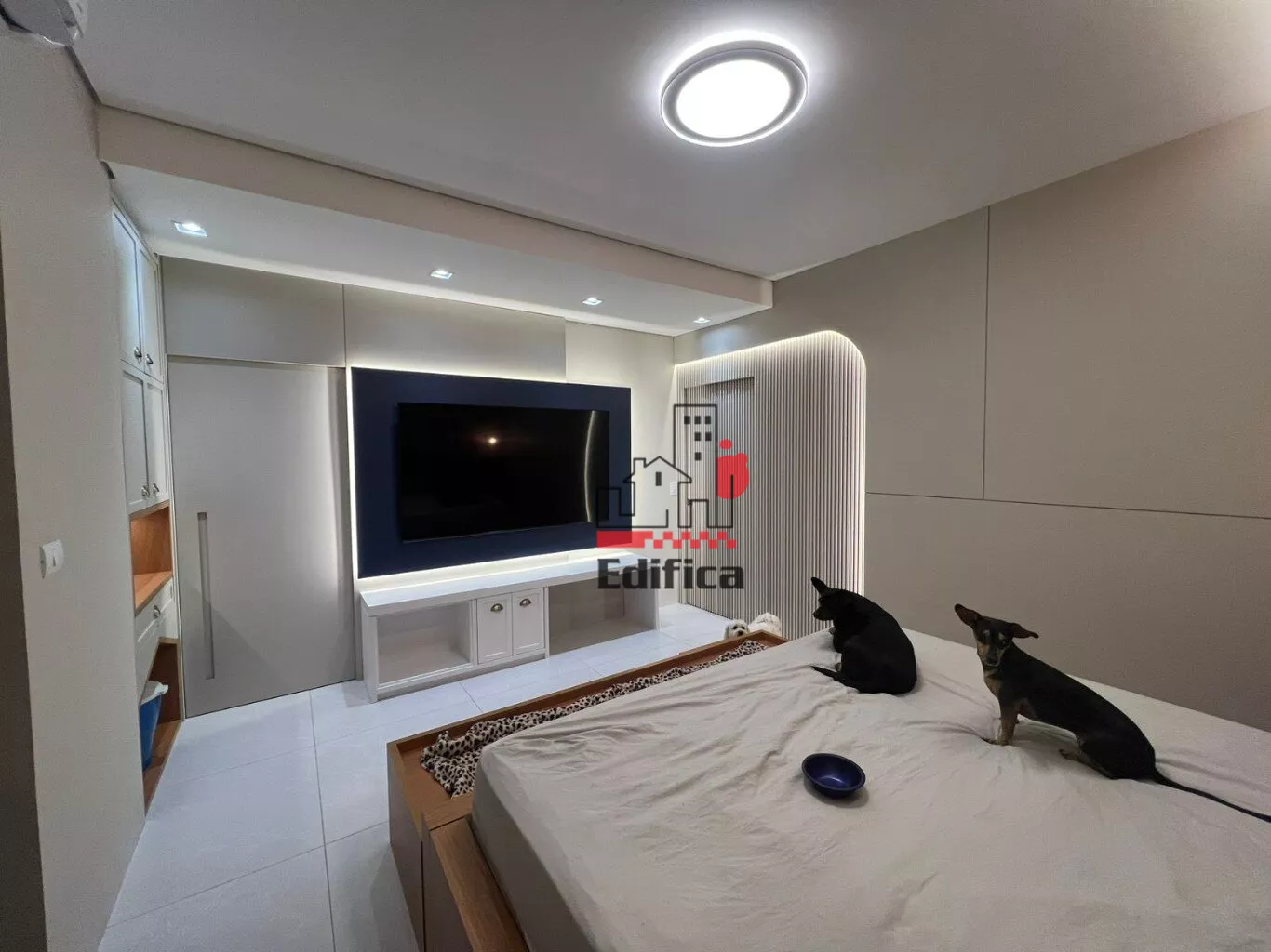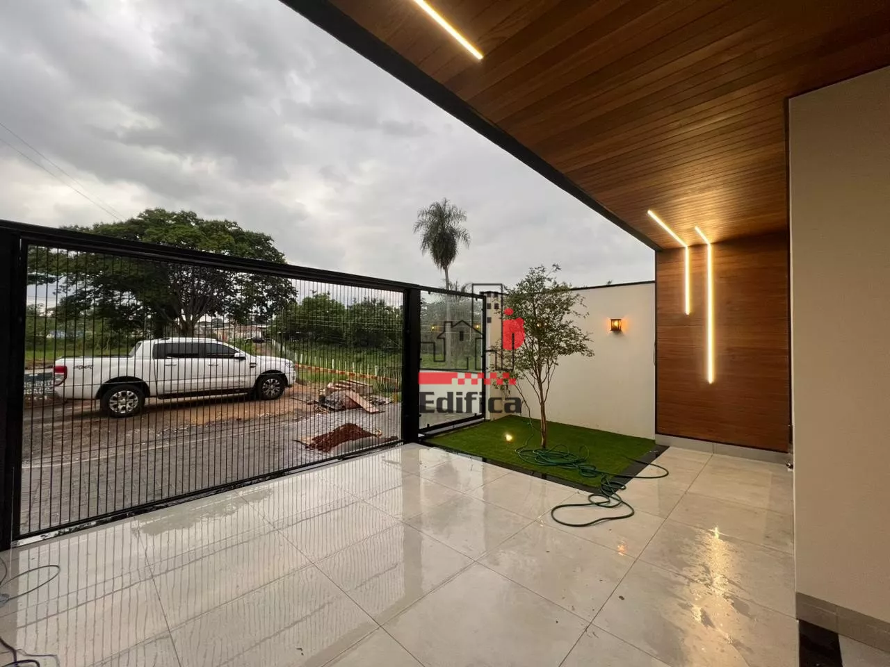 2 quartos sendo um suíte com closet. Sala de TV e jantar integradas, cozinha completa, lavanderia coberta, lavabo e banheiro social, garagem coberta para 2 carros, painéis solares instalados. Todos os cômodos com móveis planejados. Acabamento de alto padrão. Teto rebaixado com gesso e iluminação LED.