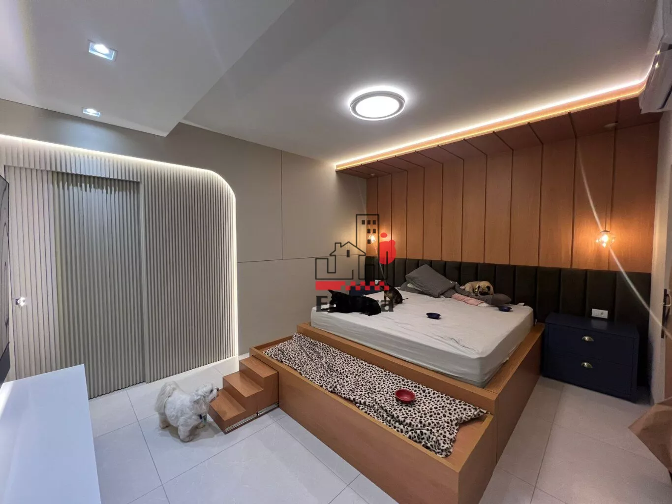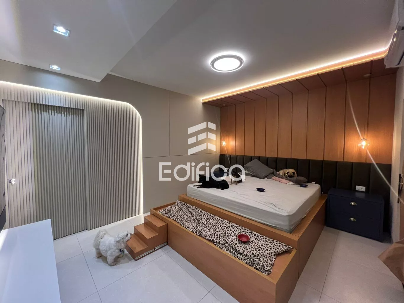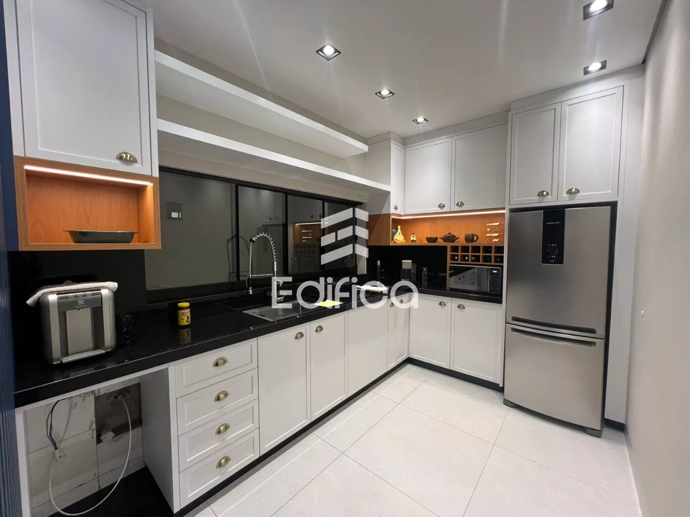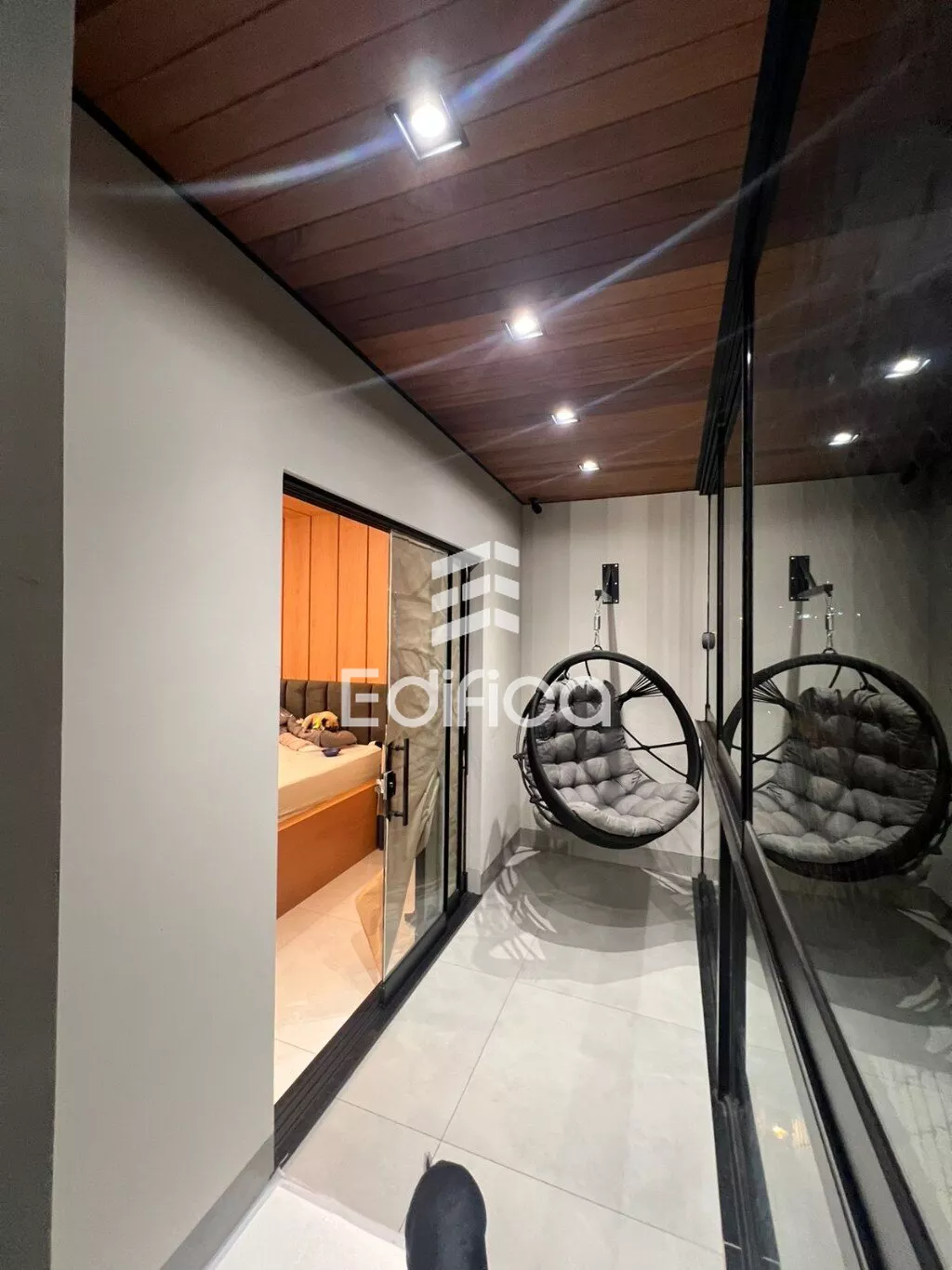 2 quartos sendo um suíte com closet. Sala de TV e jantar integradas, cozinha completa, lavanderia coberta, lavabo e banheiro social, garagem coberta para 2 carros, painéis solares instalados. Todos os cômodos com móveis planejados. Acabamento de alto padrão. Teto rebaixado com gesso e iluminação LED.