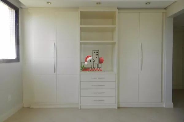 211,81m2 de área útil distribuídos em: 4 quartos, sendo 01 suíte com hidromassagem, 01 suíte simples, 2 banheiros, wc, dormitório reversível, 2 salas sendo 1 de estar e 1 de jantar, lavabo, cozinha. Armários disponíveis na área de serviço, banheiro, closet, cozinha, dormitórios e no home theater.