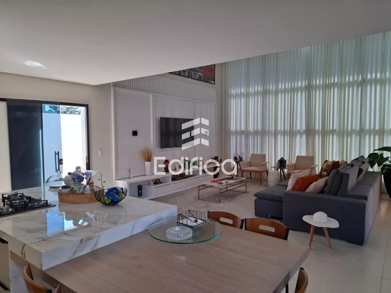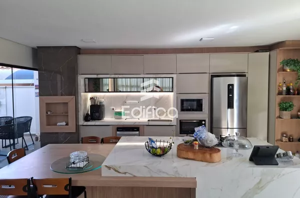 Sobrado com 01 Suíte Closet + 02 Quartos, Banheiro Social, Sala ampla integrada Cozinha, Lavabo e mais 01 Suíte no térreo.