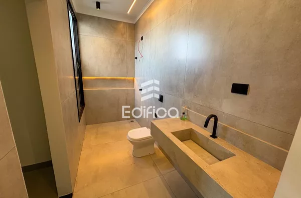 Casa de alto padrão em condomínio com cozinha planejada, sala com pé direito alto, 03 suítes sendo 01 master com closet, Piscina com cascata, despensa, área de serviço e mais.