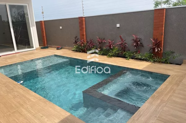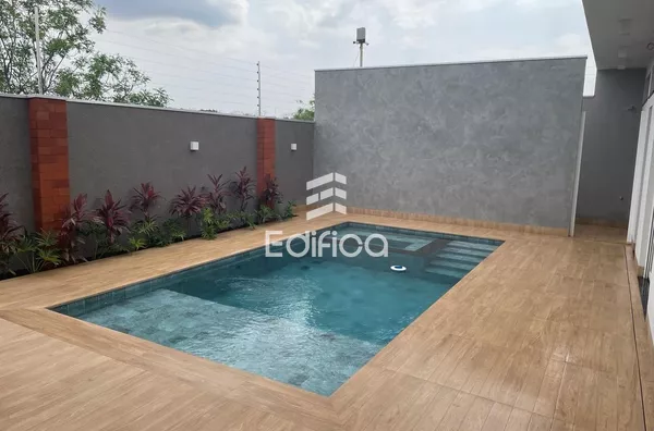 Casa conta com 03 suítes, 210m com piscina aquecida, energia solar, garagem para 02 carros cobertos e 02 carros descobertos e mais.