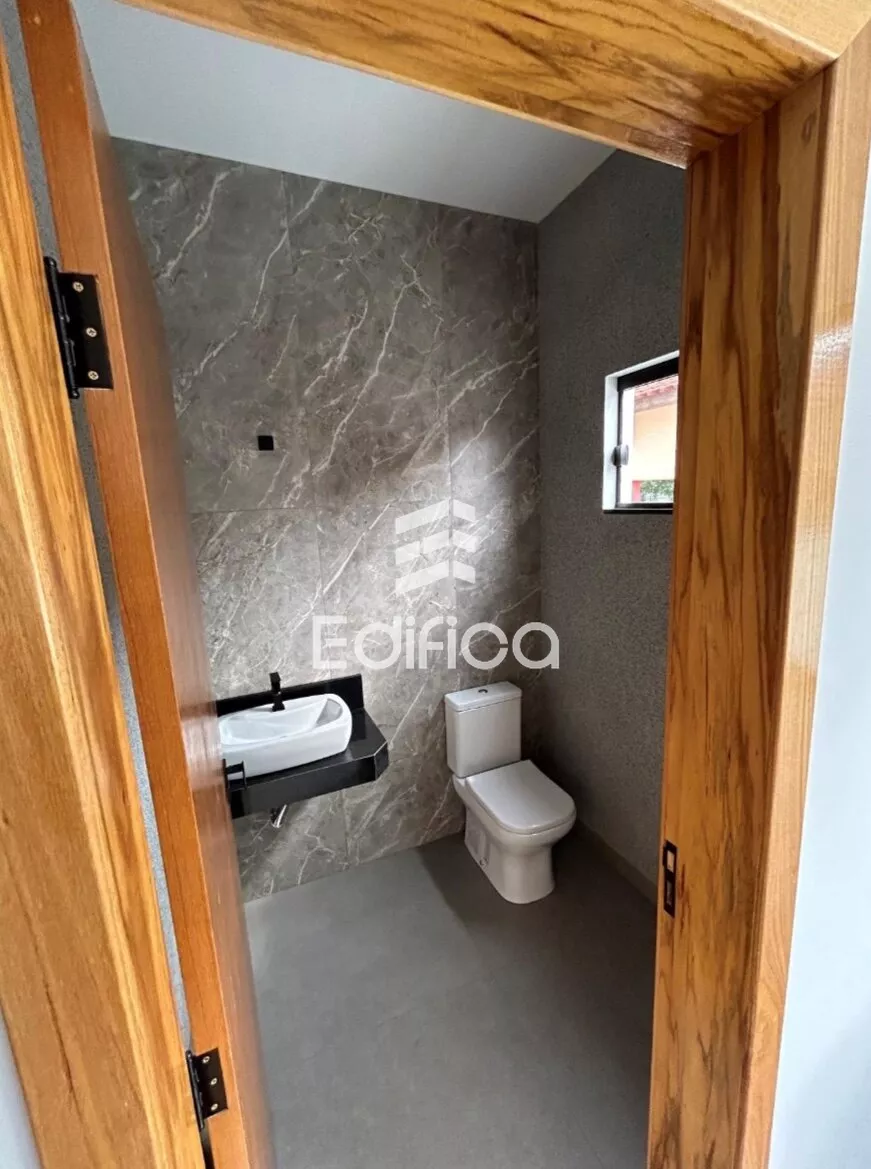 Casa de madeira aos fundos.