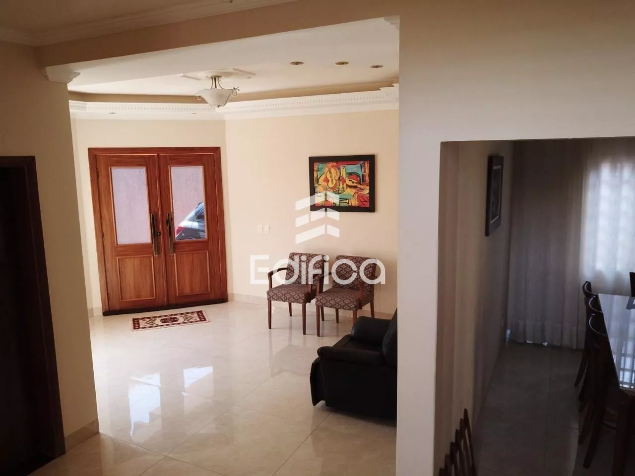 Sobrado, construído em alvenaria, localizado em um lote com topografia plana, formato retangular, de 900m2 (15mx60m), com aproximadamente 320m2 de área construída, contando com:
