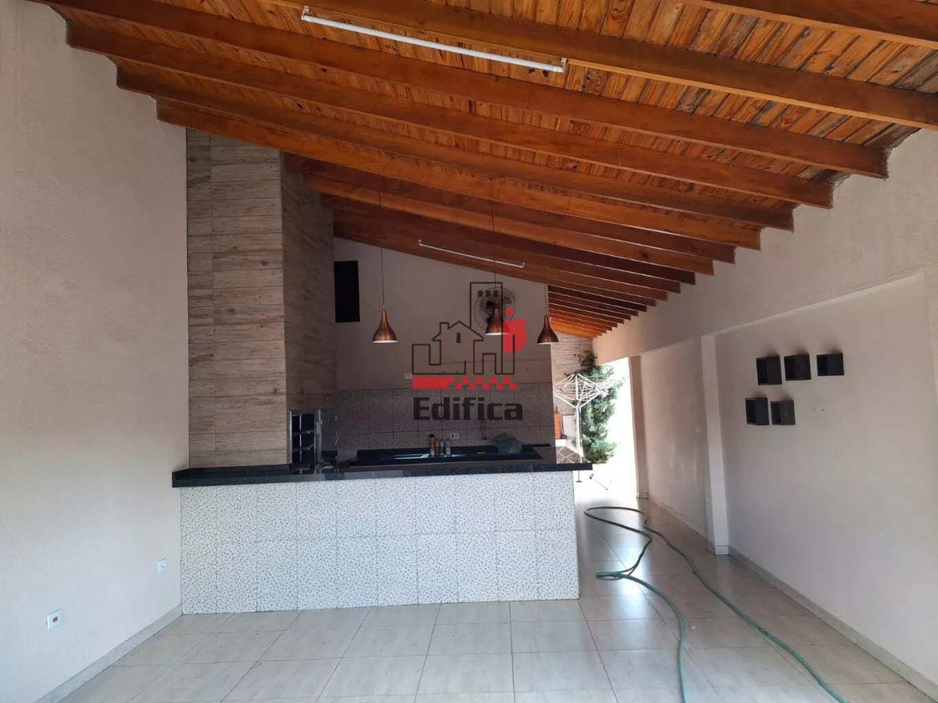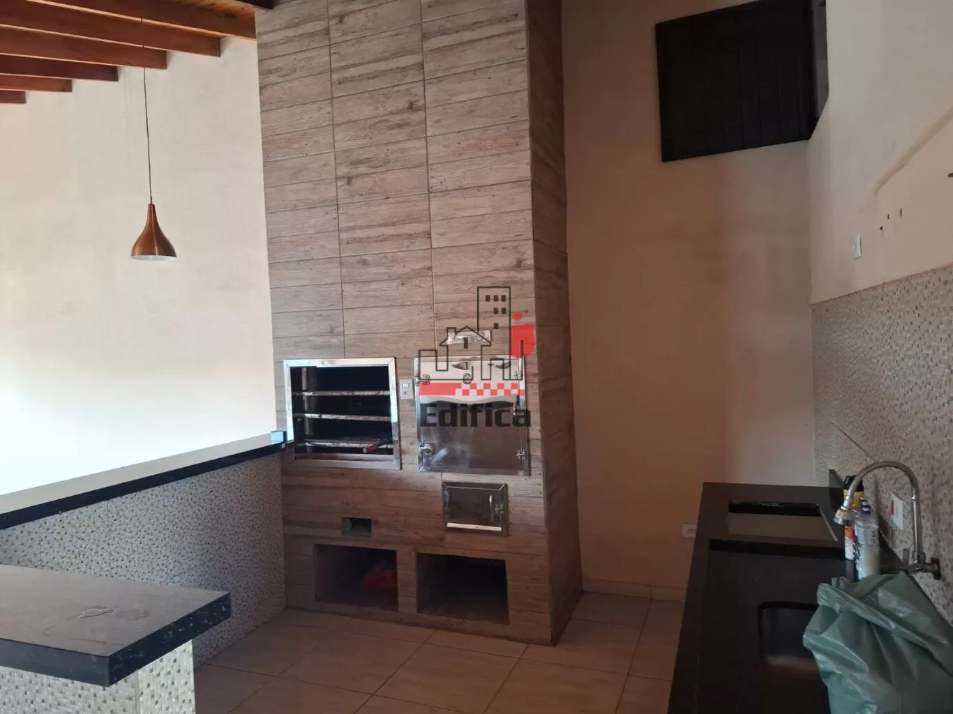 Casa com 01 suite mais 02 quartos, banheiro social, sala, cozinha, area servico, dispensa, edicula com area goumert ,churasqueira com bancada e pia em marmore e garagem para 02 carros cobertos.