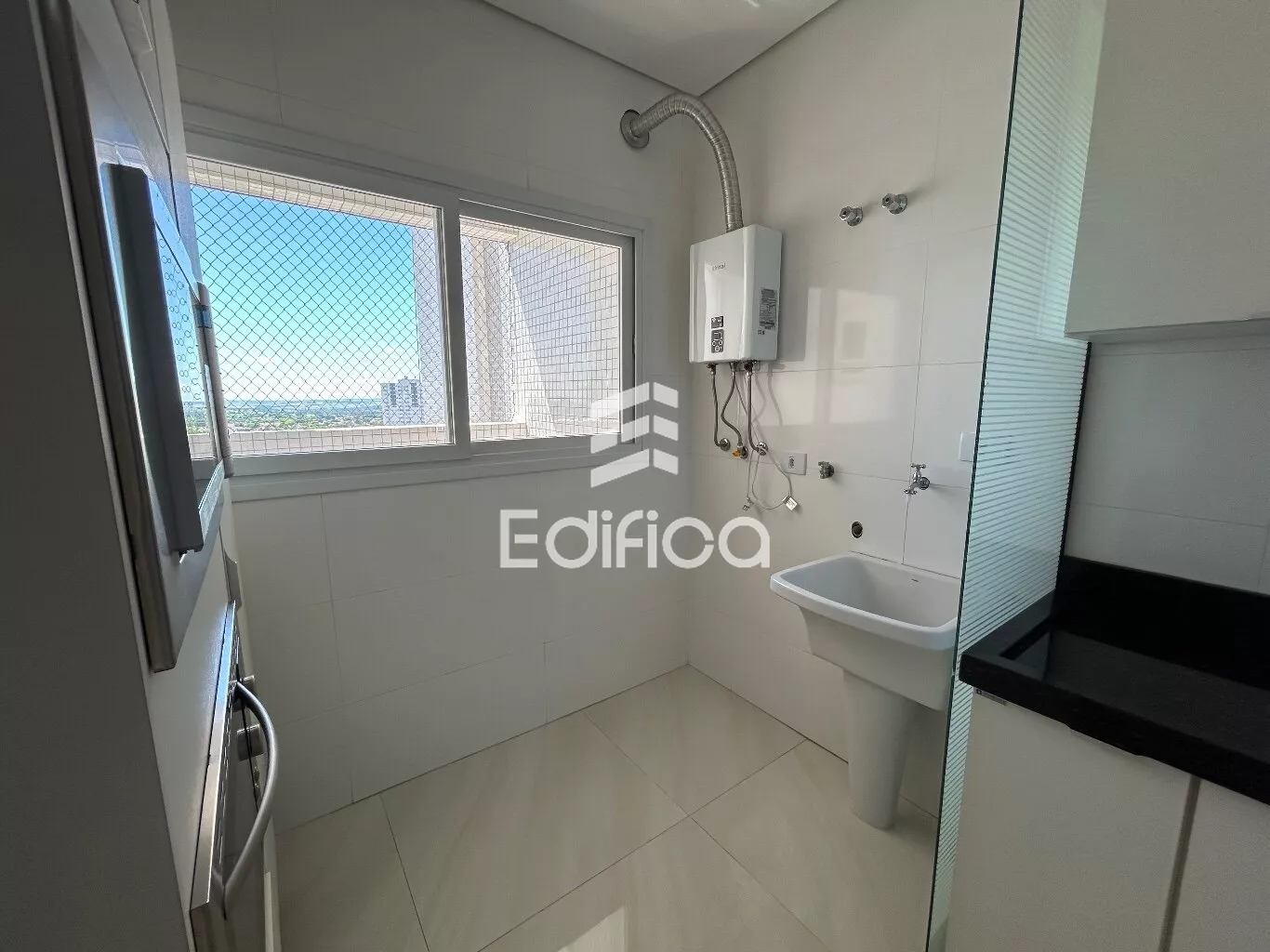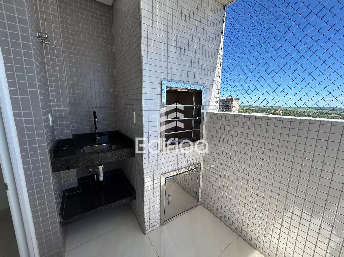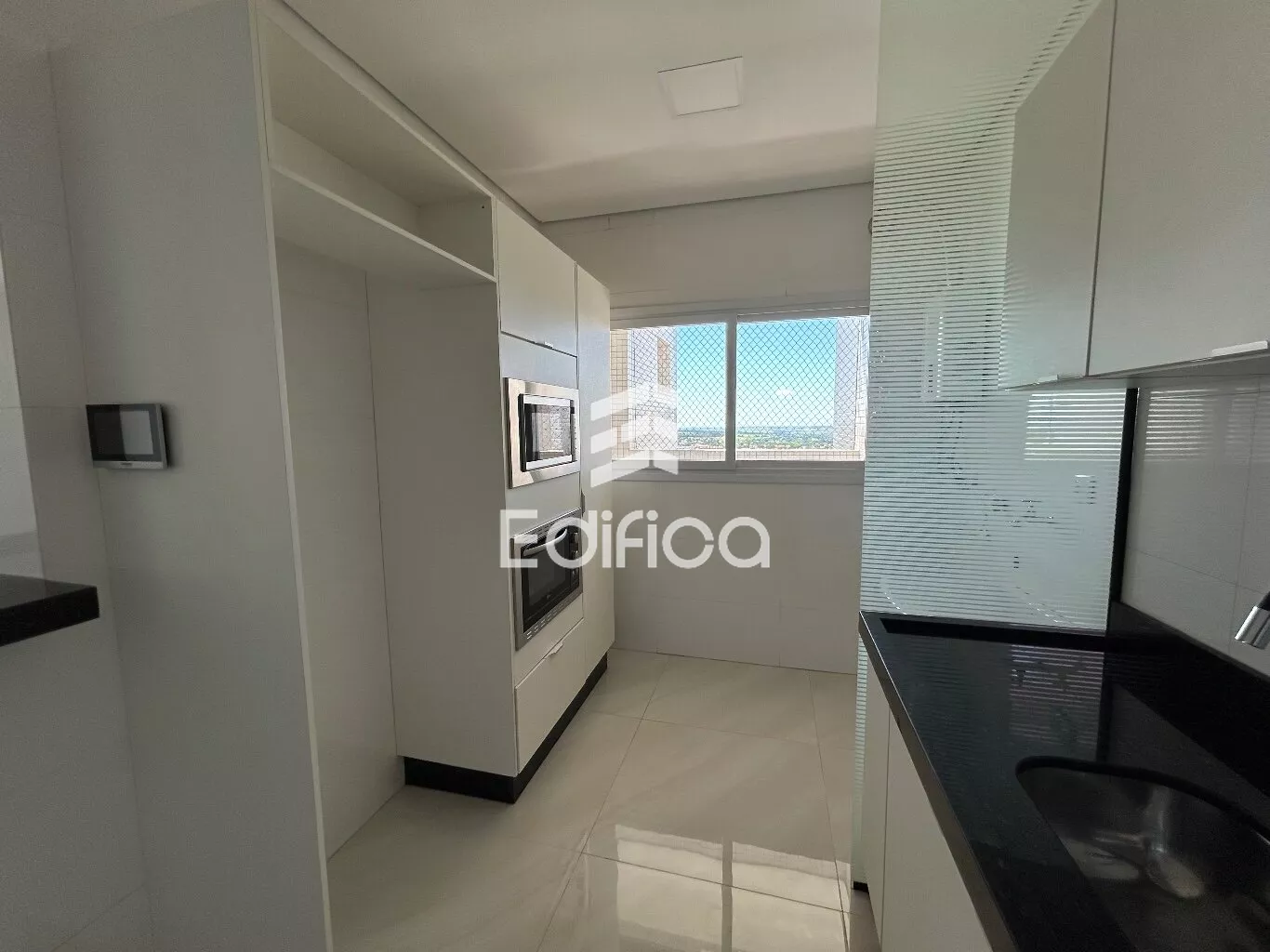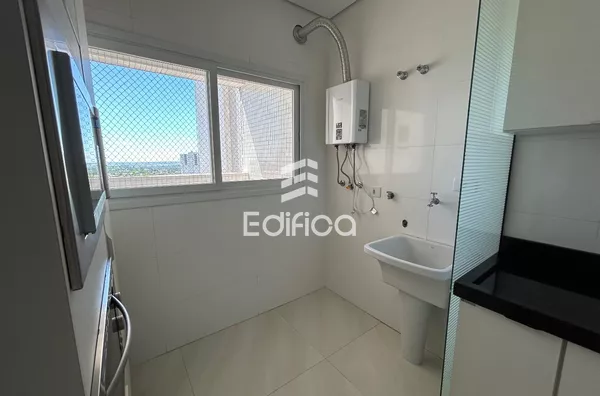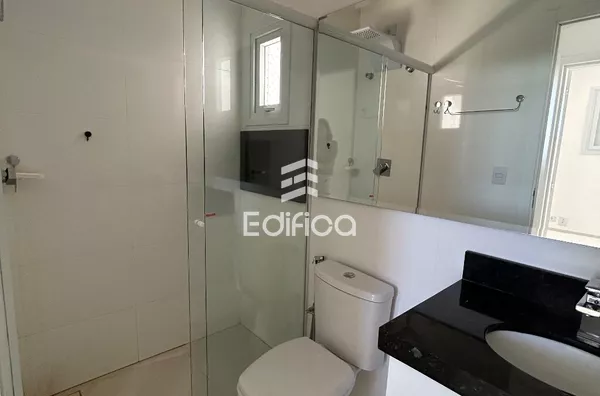 Com: 01 suíte + 01 quarto, cozinha planejada, banheiro c/ balcão, box e ducha elétrica; sala com painel para Tv, churrasqueira, forno microondas, forno elétrico, coifa e fogão cook top.